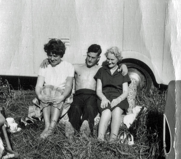 Ann, John and Winnie at Stan's caravan, Pett Level