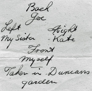 This photo belonged to Jess Sleader née Redfearn the daughter of Constance Alice Calverley (1889 - 1964) and Frederick William Redfearn (1887 - 1947).In September 2021 Allen Redfearn suggested the following identities:Joe (Joseph George Macdougal).Kate (Catherine Emma Macdougall née Redfearn) Joseph's wife.Duncan (Duncan George Macdougal) their son, and probably the photographer.