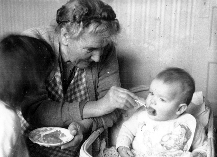 Lyndia feeds a grandchild - possibly Ian Stuart