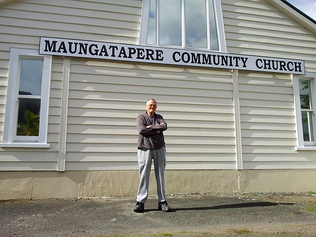 Donald outside the small rural church in Maungatapere
