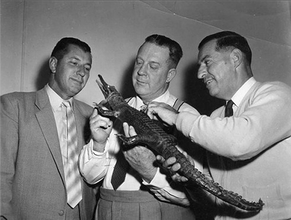 Jack, Tom and Derwin (Bill) Sleader. Press photo from The Western Australian in 1960 illustrating an article about the three brothers being together for the first time since about 1929 or 1930.